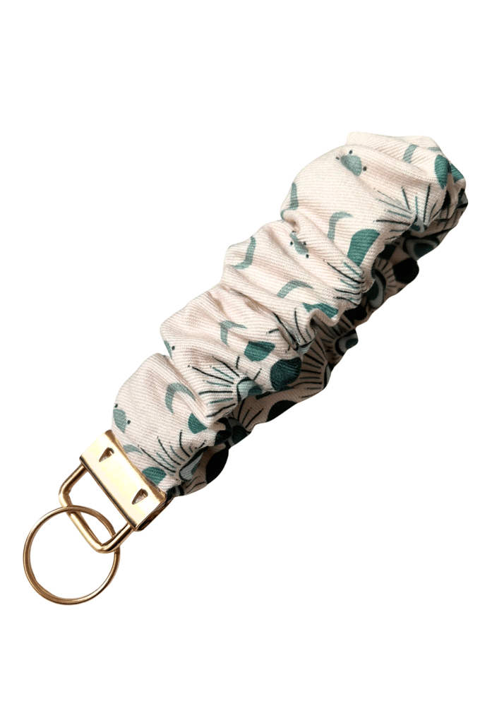 Meet your new everyday essential—the scrunchie key fob that keeps your keys close and your style on point. Made with fun, eye-catching fabrics and finished with luxe gold-colored hardware, this wristlet is designed for busy days, quick errands, and hands-free living.